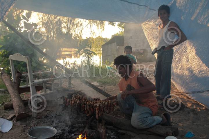 VILLAHERMOSA, TABASCO, 30JULIO2010.- Dos hermanos y su pequeño hijo se resisten a evacuar el inseguro lugar que es desbordado por las aguas del río Carrizal. Tras haber logrado pescar un Bobo Escama se alistan a pasar el día a un costado de su casa que fue alcanza por la inundación. FOTO: MARCO POLO GUZMÁN HERNÁNDEZ/CUARTOSCURO.COM