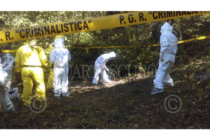 EDUARDO NERI, GUERRERO, 05NOVIEMBRE2015.- Como resultado de los trabajos de búsqueda, este jueves, Agentes del Ministerio Público de la Federación, adscritos a la Subprocuraduría Especializada en Investigación en Delincuencia Organizada (SEIDO) y personal de la Coordinación General de Servicios Periciales de la Procuraduría General de la República (PGR), así como de la División Táctica y Científica de la Policía Federal, dependiente de la Comisión Nacional de Seguridad (CNS), con apoyo de habitantes de la comunidad de Carrizalillo, municipio de Eduardo Neri, Guerrero, localizaron una nueva fosa en el paraje conocido como "El Zapotito". FOTO: PGR /CUARTOSCURO.COM