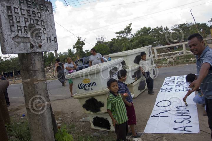 VILLAHERMOSA, TABASCO, 29NOVIEMBRE2012.- Tras el fallido dialogo del gobierno por ayudar a los habitantes en los alrededores del Campo Carrizo, donde PEMEX de manera prepotente inició derribes de propiedades en donde viven cuatrocientas familias, estos iniciaron una movilización al cerrar accesos en el tramo carretero de su localidad. De la misma manera anunciaron movilizaciones más radicales contra los abusos. FOTO: MARCO POLO GUZMÁN HERNÁNDEZ /CUARTOSCURO.COM