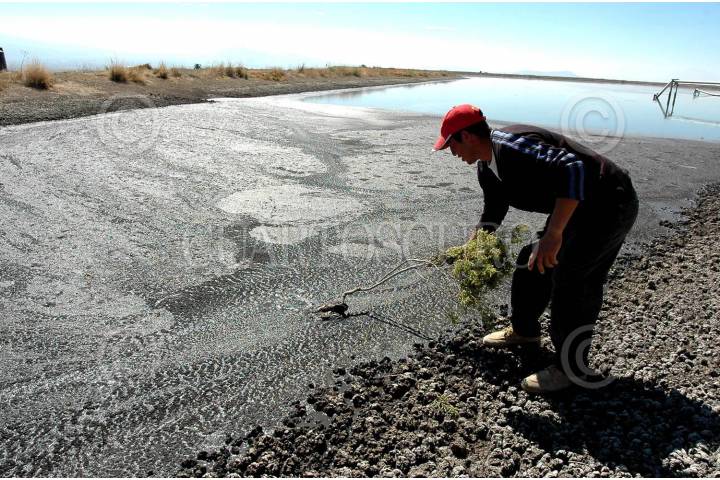 PEROTE, VERACRUZ, 11FEBRERO2006.- Durante un recorrido por las orillas de Granjas Carroll, se pudo constatar el foco de contaminación que representa la laguna de oxidación próxima a la comunidad de Orilla del Monte, donde se vierten los desechos de las granjas que se secan al aire libre, provocando olores fetidos. FOTO: Sergio Hernández/CUARTOSCURO.COM