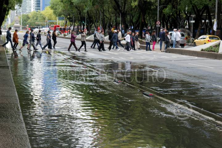 CIUDAD DE MÉXICO, 01JULIO2024.- Varias partes de la Avenida Paseo de la Reforma se encuentran encharcadas debido a fuertes lluvias. FOTO: ALICE MORITZ/CUARTOSCURO.COM