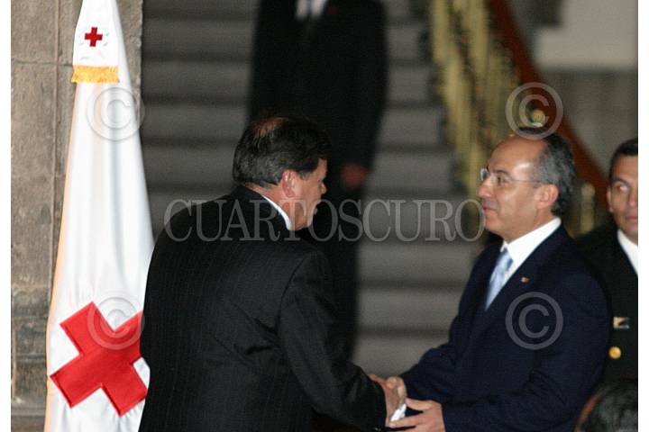 MÉXICO, D.F., 24OCTUBRE2007.- Se realizó en el alcarzar del castillo de chapultepec una cena de honor en beneficencia a la Cruz Roja . En la imagen el presidente Felipe Calderon saluda al cardenal Norberto Rivera Carrrera. FOTO: SAÚL LÓPEZ/CUARTOSCURO.COM