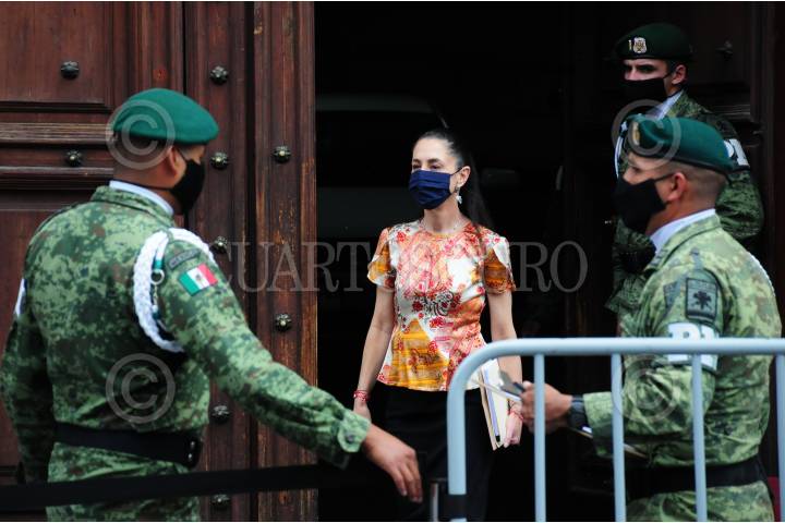 Claudia Sheinbaum sale de la reunión en Palacio Nacional.
