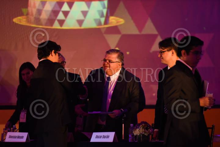 MÉXICO, D.F., 04DICIEMBRE2015.- Agustín Carstens, Gobernador del Banco de México, durante la entrega del "Premio Contacto Banxico", en la cual también hicieron presencia Dionisio Meade, Director General de Relaciones Institucionales del Banco de México, y Oscar Durán Díaz, Director de Vinculación Institucional del Banco de México. FOTO: PEDRO ANZA /CUARTOSCURO.COM