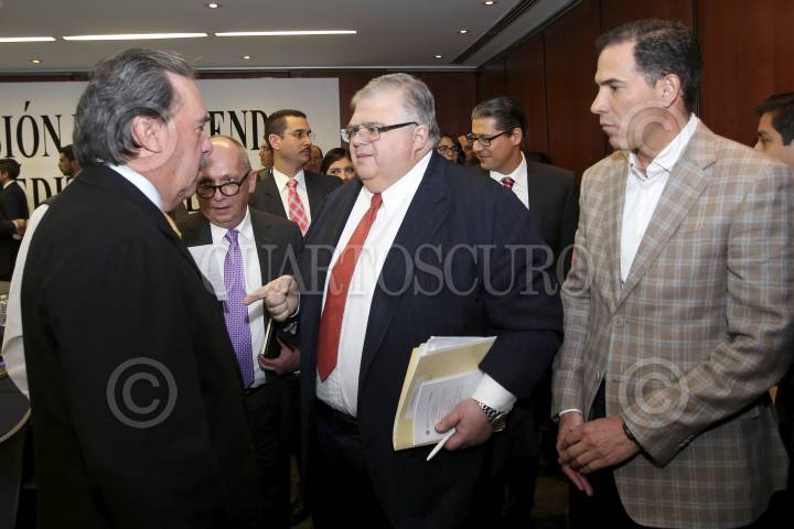 CIUDAD DE MÉXICO, 05ABRIL2017.- El senador Emilio Gamboa, Alejandra Barrales, presidenta del Partido de la Revolución Democrática, y Agustín Carstens, durante su comparecencia en el Senado de la República. FOTO: CUARTOSCURO.COM