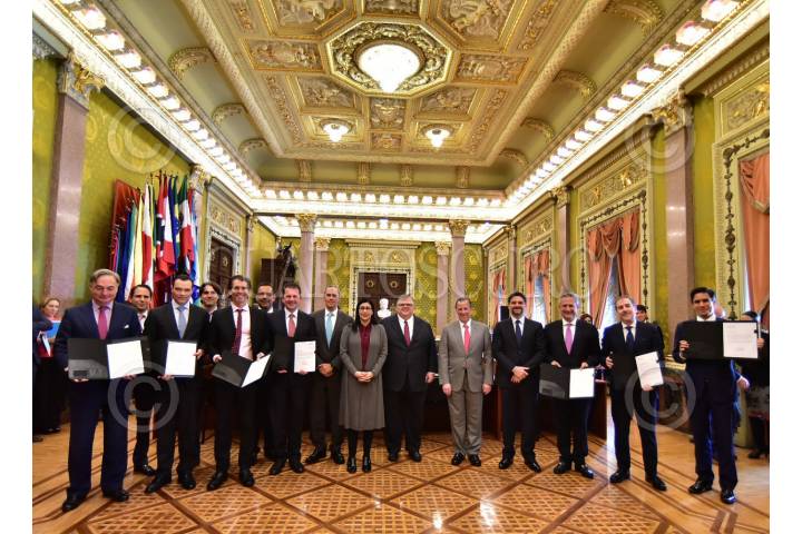 CIUDAD DE MÉXICO, 010NOVIEMBRE2017.- José Antonio Meade Kuribreña, acompañado por el gobernador del Banco de México, Agustín Carstens Carstens, y el presidente de la Comisión Nacional Bancaria y de Valores, Jaime González Aguadé, encabezaron una reunión donde se formalizó el compromiso de los Formadores de Mercado de Valores Gubernamentales que adquirieron el compromiso de adherirse al Código de Conducta del Mercado de Dinero y Renta Fija en México. FOTO: CUARTOSCURO.COM