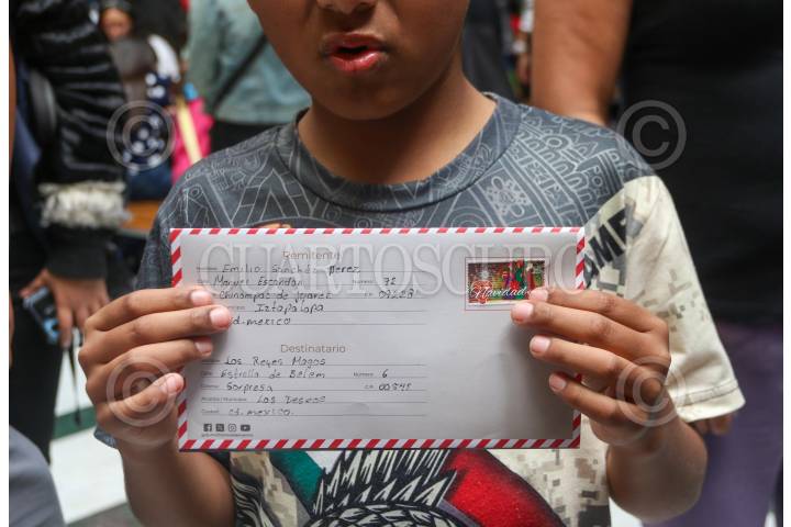 CIUDAD DE MÉXICO. 03ENERO2025.- Decenas de niños acompañados de sus padres acudieron a las oficinas de Correos Nacionales de México, entregar sus cartas a los Reyes Magos, no sin antes tomarse las tradiciones fotos. FOTO: VICTORIA VALTIERRA/CUARTOSCURO.COM