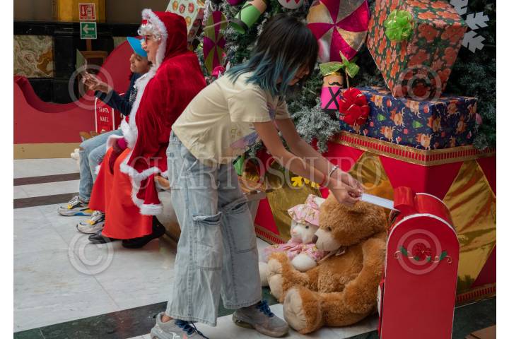 CIUDAD DE MÉXICO, 19DICIEMBRE2023.- Un "Santa Iluminado" recibió cartas de niñas y niños dirigidas a "Santa Claus" y "Los Reyes Magos". La recolección de cartas fue realizada en el Museo del Metro en la estación Mixcoac Línea 12. FOTO: MARIO JASSO/CUARTOSCURO.COM