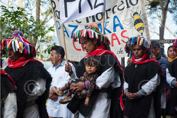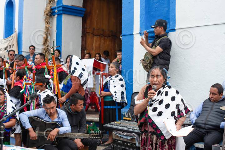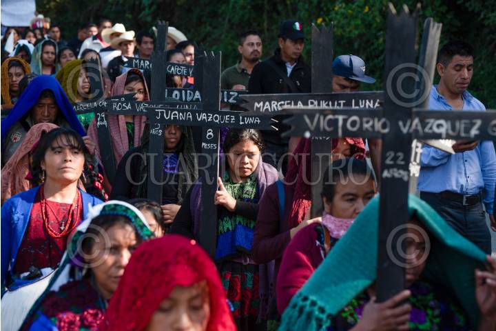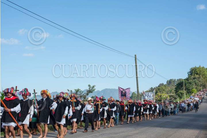SAN PEDRO CHENALHÓ, CHIAPAS, 12ENERO2025.- Miles de personas originarias de los diferentes parajes de Chenalhó y pertenecientes a la diócesis católica de la región realizaron una marcha de más tres kilómetros rumbo a la cabecera municipal, durante la marchas las personas exigieron la salida de los carteles de sus comunidades, quienes imperan con la violencia y los obligan a abandonar sus hogares. Entrando a la cabecera municipal continuaban exigiendo justicia y que los tres órdenes de gobierno se movilizaron para garantizar la paz en la comunidad, ya que a pesar de la presencia de militares e integrantes de la Guardia Nacional los enfrentamientos no han parado. Ya en la cabecera se ofreció una misa para pedir por la Paz. FOTO: ISABEL MATEOS/CUARTOSCURO.COM