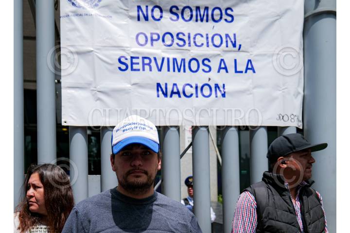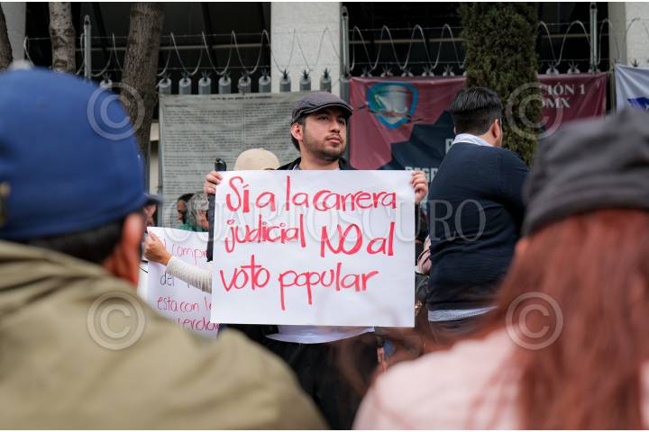 CIUDAD DE MÉXICO, 19AGOSTO2024.- Un hombre sostiene un cartel que dice “Si a la carrera judicial NO al voto popular” frente a la sede Prisma del Poder Judicial durante el paro de labores de los Trabajadores del Poder Judicial de la Federación (PJF), en protesta contra la reforma propuesta por el Ejecutivo Federal, que según ellos, amenaza la independencia judicial y los derechos laborales. Diversos colectivos han convocado a la sociedad a unirse en defensa del país. FOTO: ALICE MORITZ/CUARTOSCURO.COM