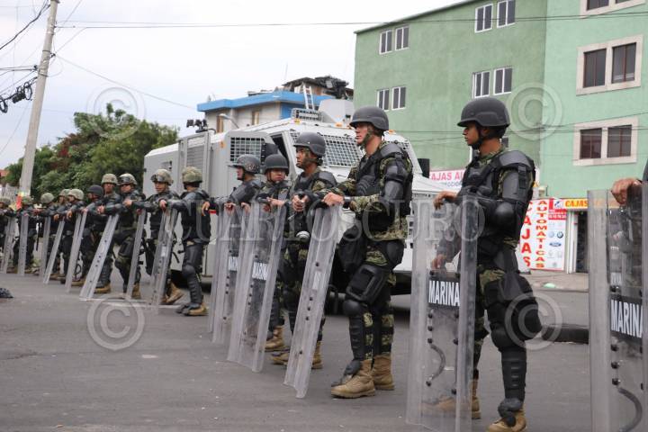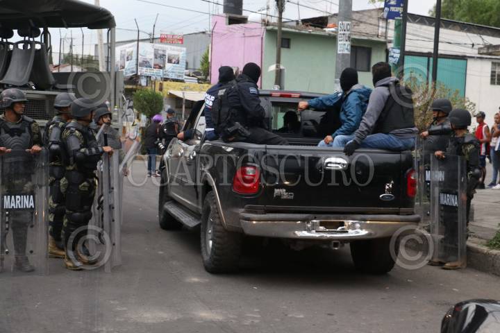 CIUDAD DE MÉXICO, 20JULIO2017.- La Marina continúa vigilando las calles aledañas en donde abatieron a Felipe de Jesús “N”, alías El Ojos, y presunto líder del cartel de Tláhuac, que es relacionado con delitos como el secuestro y la venta de drogas, en las delegaciones Tláhuac, Iztapalapa, Milpa Alta y Xochimilco. Con unidades artilladas y elementos armados con armas de alto poder las fuerzas federales mantienen vigilado el domicilio en donde cayó el presunto líder, en compañía de otros siete hombres. En el contexto de este operativo varios mototaxistas bloquearon calles de la delegación, esto para entorpecer el operativo, varios fueron arrestados por policías capitalinas. FOTO: SAÚL LÓPEZ /CUARTOSCURO.COM