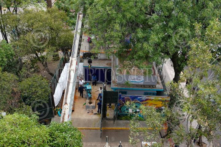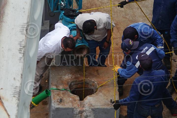CIUDAD DE MÉXICO, 11ABRIL2024.- Trabajadores de diversas instituciones realizan labores de limpieza en el Pozo Alfonso XIII, esto luego de que el gobierno de la ciudad detectara en dicho pozo un punto de contaminación para el aguan potable para los vecinos de la alcaldía Benito Juárez. FOTOS: ROGELIO MORALES /CUARTOSCURO.COM