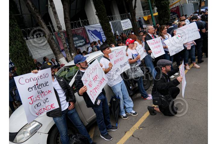 CIUDAD DE MÉXICO, 19AGOSTO2024.- Varios trabajadores del Poder Judicial de la Federación (PJF) sosteniendo carteles frente a la sede Prisma durante el paro de labores en protesta contra la reforma propuesta por el Ejecutivo Federal, que según ellos, amenaza la independencia judicial y los derechos laborales. Diversos colectivos han convocado a la sociedad a unirse en defensa del país. FOTO: ALICE MORITZ/CUARTOSCURO.COM