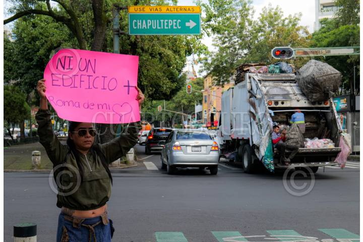 CIUDAD DE MÉXICO, 22AGOSTO2024.- Varios habitantes de las colonias Roma Norte y Roma Sur llevaron carteles durante una protesta para exigir al presidente Andrés Manuel López Obrador y a al Instituto de Bellas Artes y Literatura (INBAL) que declaren estas colonias como “Zonas de Monumentos Artísticos”, con el propósito de protegerlas de las construcciones inmobiliarias y de los cambios de usos de suelo. Además, pidieron al alcalde de Cuauhtémoc, Raúl Ortega, la suspensión temporal de las construcciones en curso hasta la revisión de los permisos, ya que aseguran que muchos antros y restaurantes no cuentan con la debida autorización, y esas construcciones son, según ellos, favorece la escasez de agua y el incremento de la delincuencia. FOTO: ALICE MORITZ/CUARTOSCURO.COM