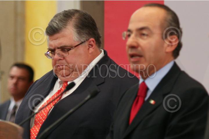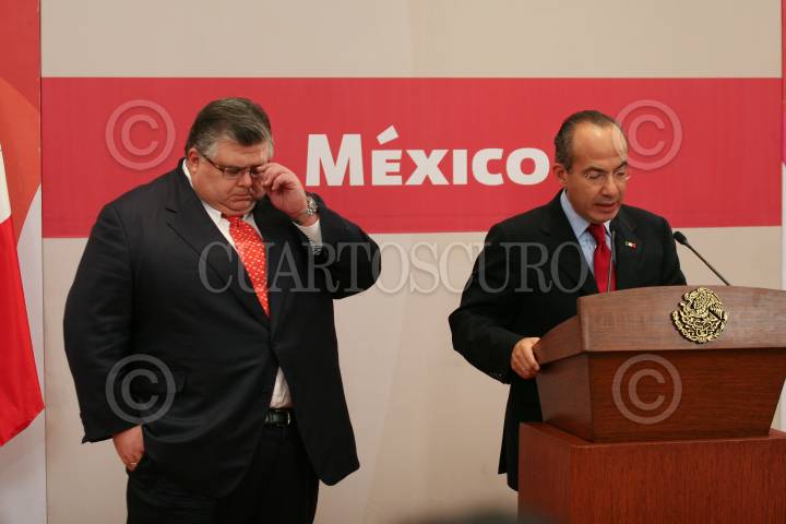 MÉXICO, D.F. 08OCTUBRE2008.- El presidente, Felipe Calderón Hinojosa, acompañado del Secretario de Hacienda, Agustín Cartens Cartens y del Titular de la Secretaria de Economía, Gerardo Ruiz Mateos, dio a conocer el plan económico para el rescate de la economía nacional, esto por la crisis que se vive a nivel mundial. FOTO: GUILLERMO PEREA/CUARTOSCURO.COM