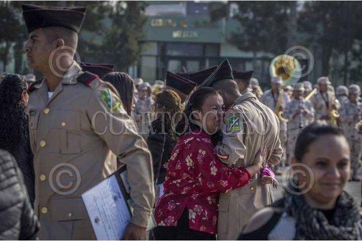 TIJUANA, BAJA CALIFORNIA, 15DICIEMBRE2018.- Se llevo a cabo la ceremonia de graduación, liberación de cartilla y reconocimiento a los conscriptos de la Segunda Compañía del SMN. El evento se realizó en las instalaciones del Cuartel Morelos, en la ciudad fronteriza, lugar donde acudieron familiares de los cadetes para presenciar el acto militar. FOTO: OMAR MARTÍNEZ /CUARTOSCURO.COM