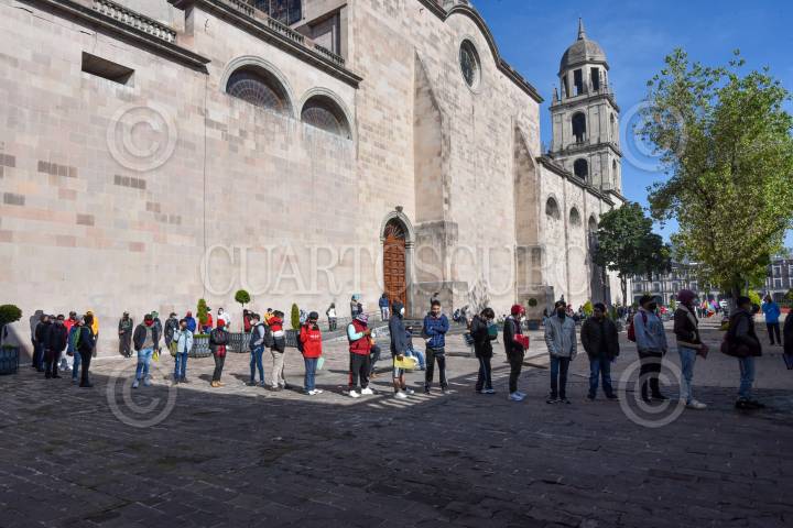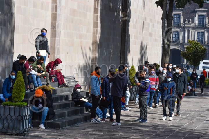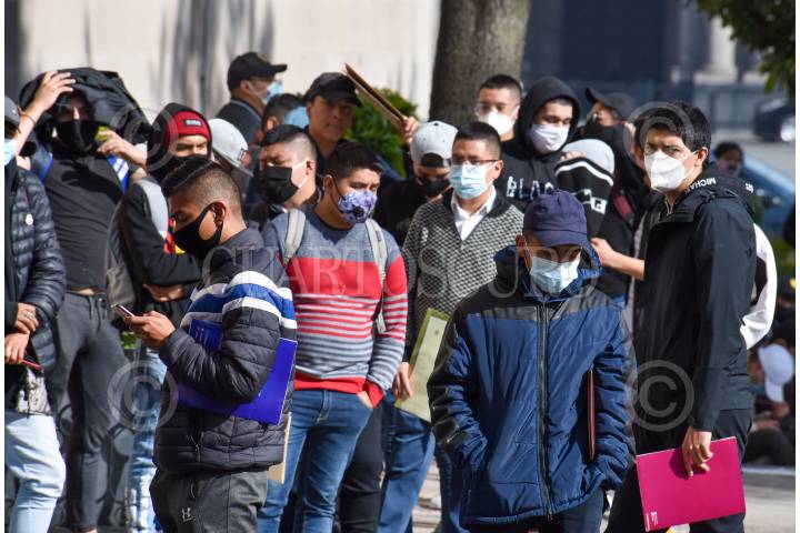 Jóvenes hacen largas filas para poder inscribirse y realizar su trámite de la Cartilla del SMN.
