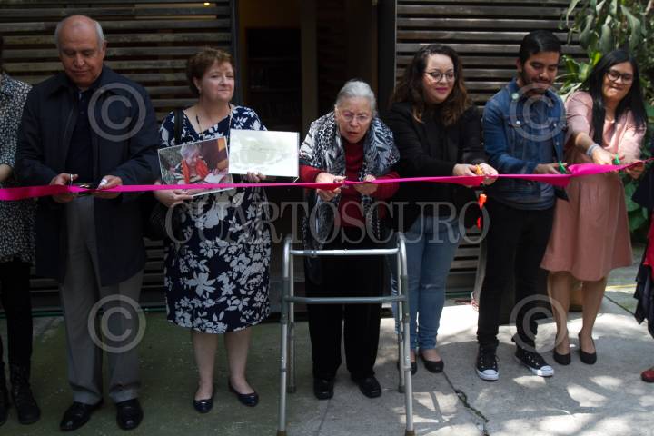 CIUDAD DE MÉXICO, 15NOVIEMBRE2018.- Griselda Triana, esposa del periodista, Javier Valdez, asesinado hace 18 meses en Culiacán, inauguró al lado de amigos y autoridades como el secretario de Cultura capitalino Eduardo Vázquez Martín y el político Cuauhtémoc Cárdenas Solórzano una biblioteca memorial en la Casa Refugio Citlaltépetl donde se encontrará a disposición de quien lo desee gran parte de la colección que el escritor poseía, también material donado por amigos y objetos personales. FOTO: ILSE HUESCA /CUARTOSCURO.COM