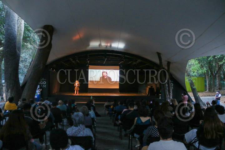 CIUDAD DE MÉXICO, 06AGOSTO2019.- Federico Pérez Villoro, el artista Vaginal Davis y la Curadora Cinthya García Leyva, durante la presentación de la primera edición de Materia Abierta, Novo Pan Klub, un programa independiente de verano sobre teoría, arte y tecnología, en la Casa del Lago. FOTO: ISAAC ESQUIVEL /CUARTOSCURO.COM