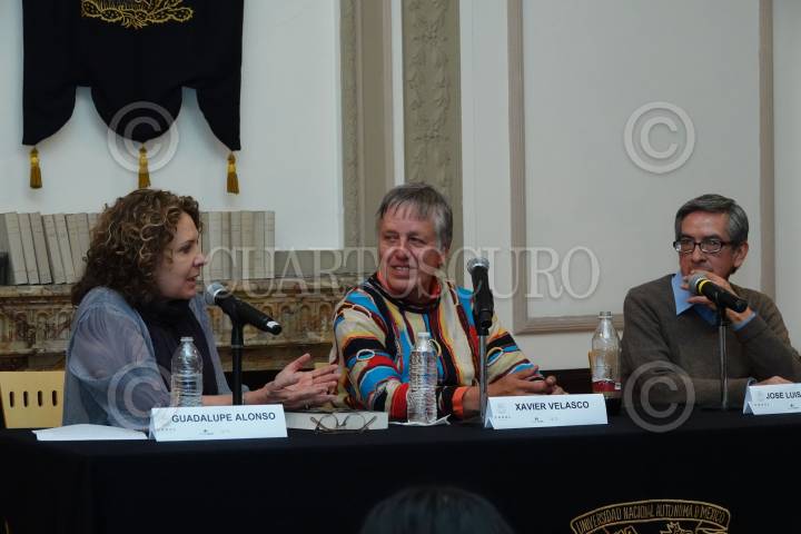 CIUDAD DE MÉXICO, 23ENERO2025.- Guadalupe Alonso, directora de la Casa Universitaria del Libro (CASUL) y los escritores Xavier Velasco y José Luis Martínez rindieron un homenaje a la conductora y cronista Cristina Pachecho (1978-2023) FOTO: GALO CAÑAS/CUARTOSCURO.COM