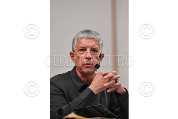 CIUDAD DE MÉXICO, 06MARZO2024.- Eduardo Vázquez Martín, escritor y poeta, y secretario de Cultura de la capital de 2014 a 2018, durante la presentación del libro “Fragmentos como residencia” de Sergio Raúl Arroyo, en Casa Universitaria del Libro UNAM. FOTO: MARIO JASSO/CUARTOSCURO.COM