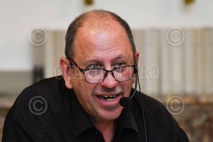CIUDAD DE MÉXICO, 06MARZO2024.- Sergio Raúl Arroyo, escritor y antropólogo, durante la presentación de su libro “Fragmentos como residencia”, en Casa Universitaria del Libro UNAM. Lo acompañan: Eduardo Vázquez Martín, escritor y poeta, y secretario de Cultura de la capital de 2014 a 2018; Víctor Manuel Mendiola, ensayista y editor, y Eduardo Moctezuma; Arqueólogo y antropólogo. FOTO: MARIO JASSO/CUARTOSCURO.COM