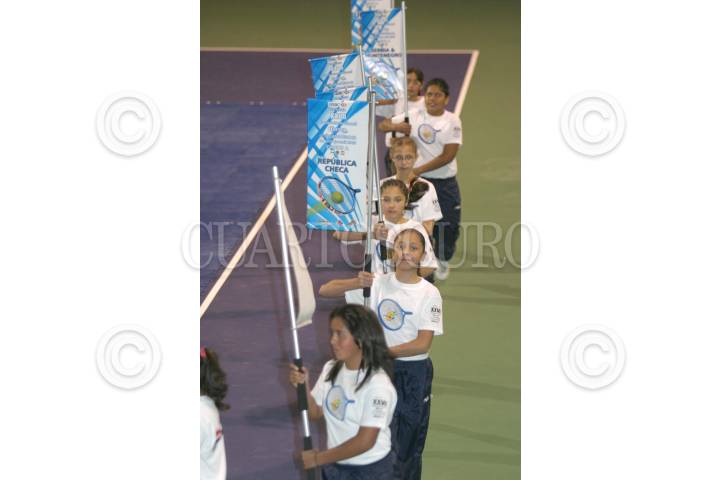 MEXICO, D.F. 28DICIEMBRE2004.- Unos niños representaron a los países que participarán en la XXVII Copa Internacional de Tenis, que se lleva a cabo en el Clud Casablanca. FOTO: Eunice Adorno/CUARTOSCURO.COM