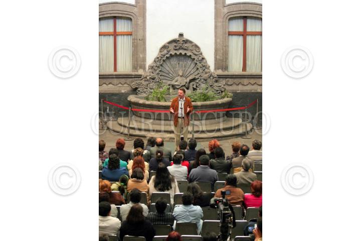 TEPOTZOTLÁN, ESTADO DE MÉXICO, 10SEPTIEMBRE2009.- Michel Zabé y Laura Castañeda, durante el anuncio de la exposición "Miradas Congeladas Guillermo Kahlo y los Fotógrafos Contemporaneos", en el Museo Nacional del Virreinato. FOTO: ARTURO LÓPEZ/CONACULTA/CUARTOSCURO.COM