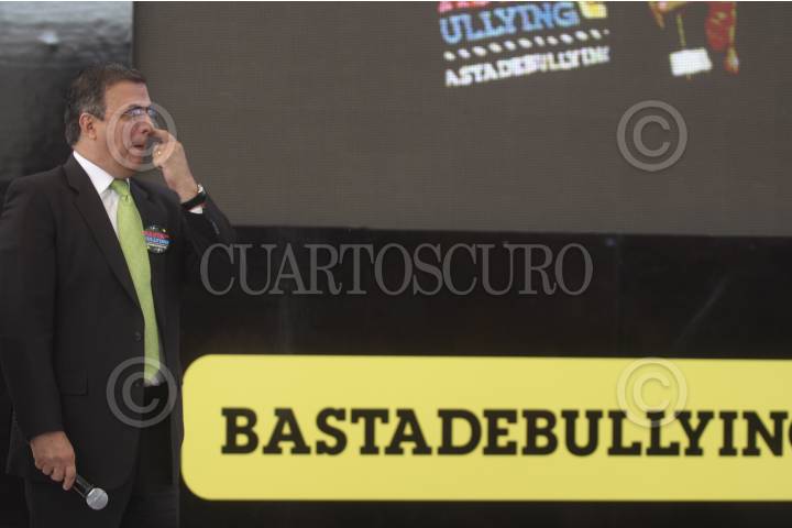 MÉXICO, D.F., 29MAYO2012.- Marcelo Ebrard Casaubon, jefe de gobierno capitalino asistio al evento Basta de Bullying, no te quedes callado que tuvo lugar en el Papalote Museo del Niño. FOTO: ENRIQUE ORDÓÑEZ /CUARTOSCURO.COM