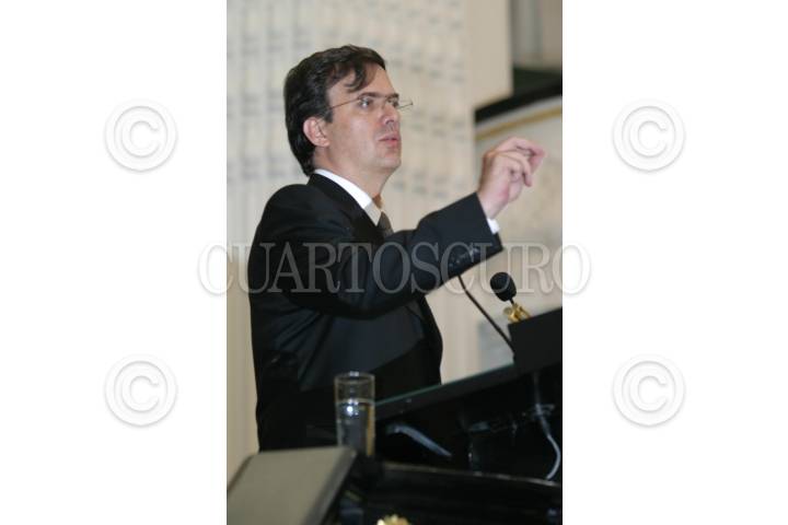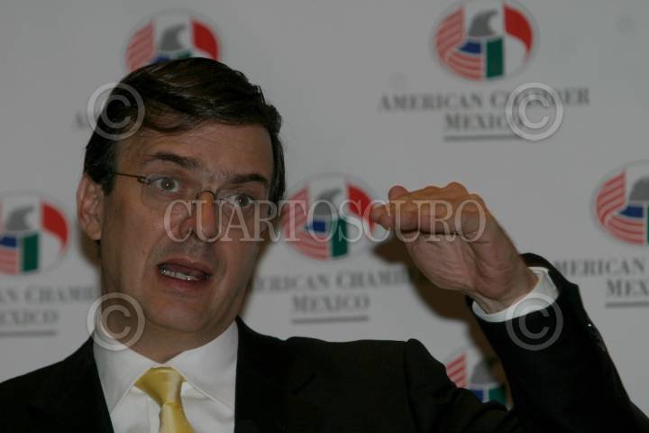 MEXICO, D.F. 14JUNIO2006.- Marcelo Ebrard Casaubom, candidato del PRD a la jefatura de gobierno del D.F. durante su intervención en una reunión organizada por American Chamber. FOTO: Nelly Salas/CUARTOSCURO.COM