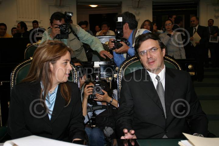 México, D.F. 24 Marzo 2004.- Marcelo Ebrard, secretario de seguridad pública del D. F., conversa con la asambleista Lorena Villavicencio (PRD) previo a su comparecencia ante legisladores. FOTO: Nelly Salas/CUARTOSCURO.COM