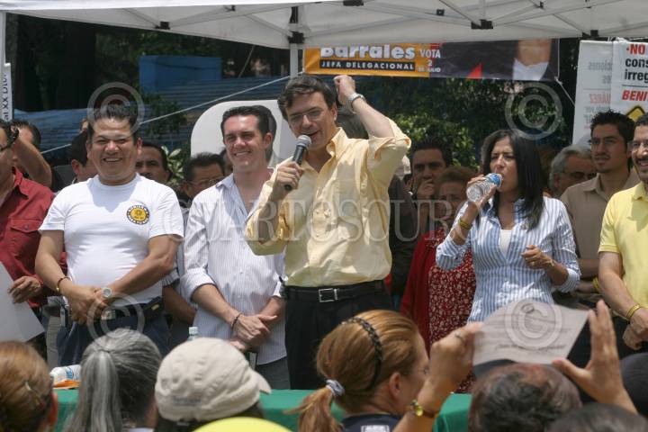 MEXICO, D. F. 18JUNIO2006.- Después de dos horas de retraso Marcelo Ebrard Casaubom, candidato del PRD a la jefatura de gobierno del D.F. dirige su mensaje de campaña a vecinos de la delegación Benito Juárez. FOTO: Nelly Salas/CUARTOSCURO