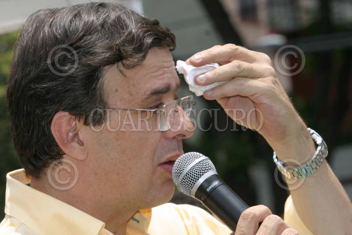 MEXICO, D. F. 18JUNIO2006.- Después de dos horas de retraso Marcelo Ebrard Casaubom, candidato del PRD a la jefatura de gobierno del D.F. escucha la intervención de Martí Batres, durante un acto de campaña en la delegación Benito Juárez. FOTO: Nelly Salas/CUARTOSCURO