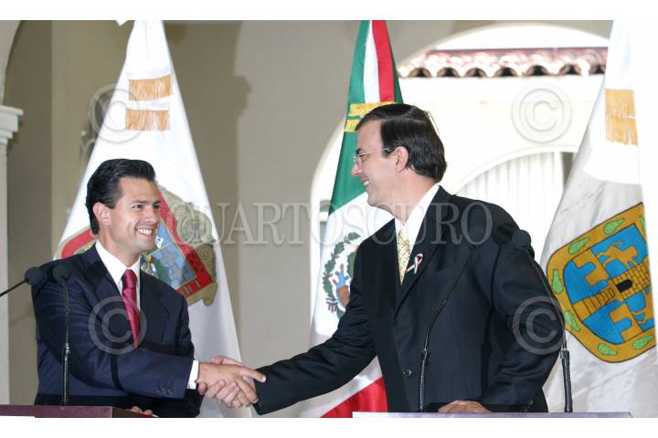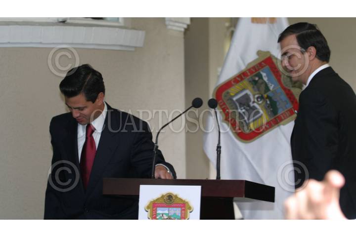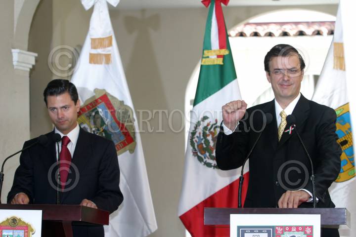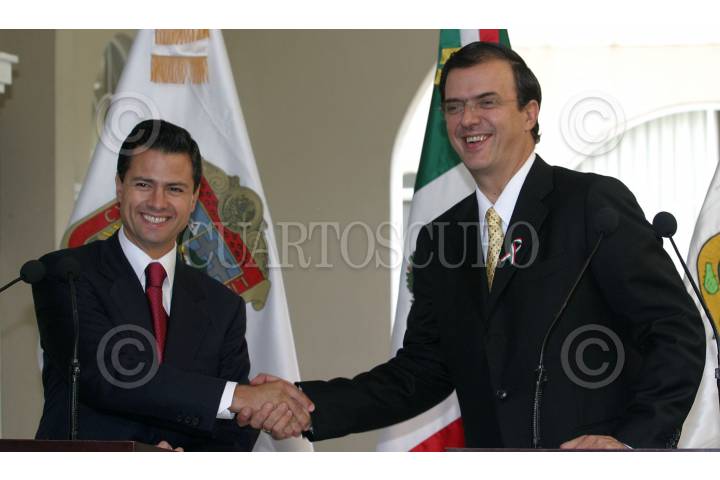 MEXICO, D.F. 03OCTUBRE2006.- Enrique Peña Nieto, gobernador del Estado de México y Marcelo Ebrard Casaubom, jefe de gobierno electo ofrecieron conferencia de prensa conjunta donde informaron mantener el Fondo Metropolitano. FOTO: NELLY SALAS/CUARTOSCURO.COM