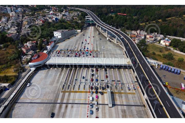 CIUDAD DE MÉXICO, 21DICIEMBRE2024.- Debido a las vacaciones de las fiestas decembrinas, personas salen de la capital del país para pasar dichas fechas en otros estados. En imágenes tomas aéreas de la Casta México-Cuernavaca. FOTO: ROGELIO MORALES /CUARTOSCURO.COM