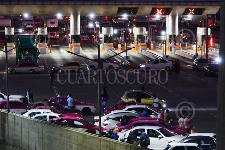 CIUDAD DE MÉXICO, 04JUNIO2024.- Diferentes grupos de taxistas de la CDMX realizaron un bloqueo en ambos sentidos de la caseta Mexico-Cuernavaca, para exigir a las autoridades locales y de Morelos, justicia ante un supuesto delito de robo. FOTOS: ROGELIO MORALES /CUARTOSCURO.COM
