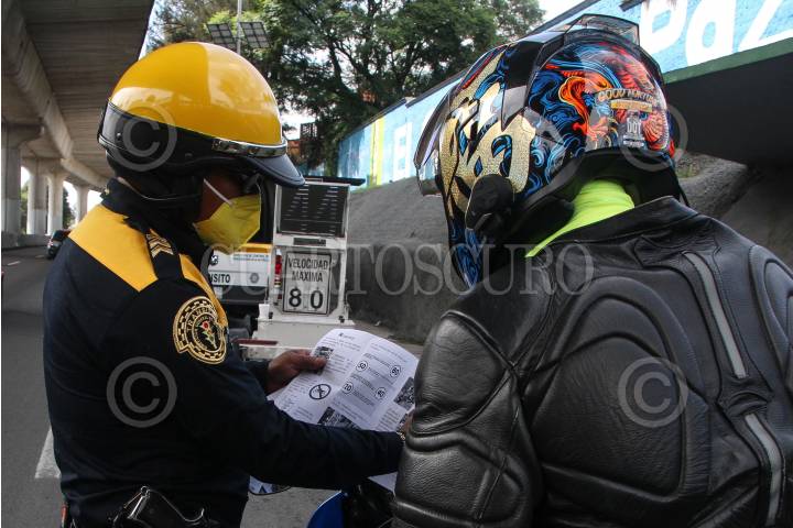 Policías de tránsito refuerzan operativos para el control de velocidad en motocicletas.