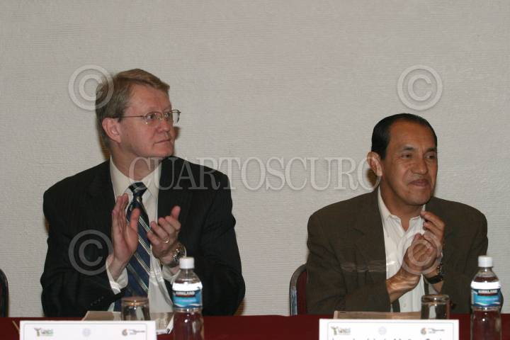 MEXICO, D.F. 19FEBRERO2007.- Heberto Castillo, delegado de Coyoacán y José Luis Soria, delegado de Cuautemoc durante la ceremonia de la Comisión de Desarrollo Social. FOTO: NELLY SALAS/CUARTOSCURO.COM