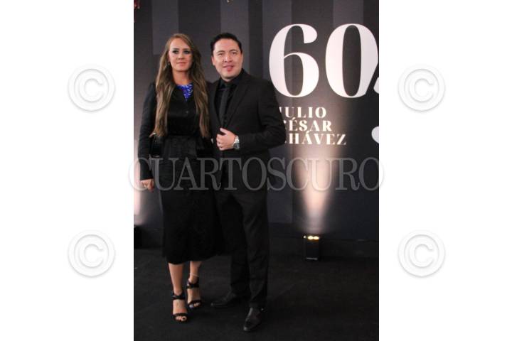 El actor Roberto Palazuelos y su pareja Yadira Garza durante la Alfombra negra 60’s del boxeador mexicano Julio César Chávez