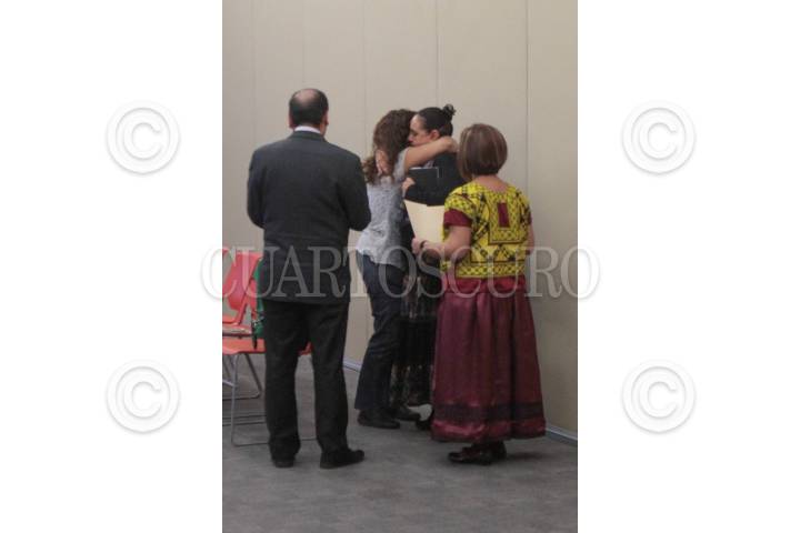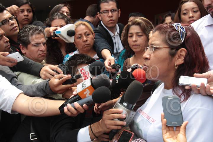 MÉXICO, D.F., 03MAYO2014.- Luego de una larga reunión en la Comisión de Derechos Humanos del DF los padres de los doce jóvenes secuestrados del bar Heaven y posteriormente asesinados, salieron y ofrecieron conferencia de prensa en la aceptan el peritaje de identificación realizado por expertos argentinos. La comisión se hizo extrañar por que por la tarde la Procuraduría General de Justicia del DF dió a conocer los resultados en un boletín de prensa cuando apenas ellos estaban en el proceso de explicarles a los familiares las razones de por que este análisis es correcto. Al salir Leticia Ponce, madre de Jerzy Ortiz, hijo de Jorge Ortiz "El Tanque" pidió que su esposo sea quien identifique los restos de su hijo. El 26 de mayo de 2013 un grupo de 13 jóvenes fueron secuestrado en el bar Heaven en la Zona Rosa y hallados en una fosa clandestina en el rancho La Negra, en el municipio de Tlalmanalco, estado de México. FOTO: MOISÉS PABLO /CUARTOSCURO.COM