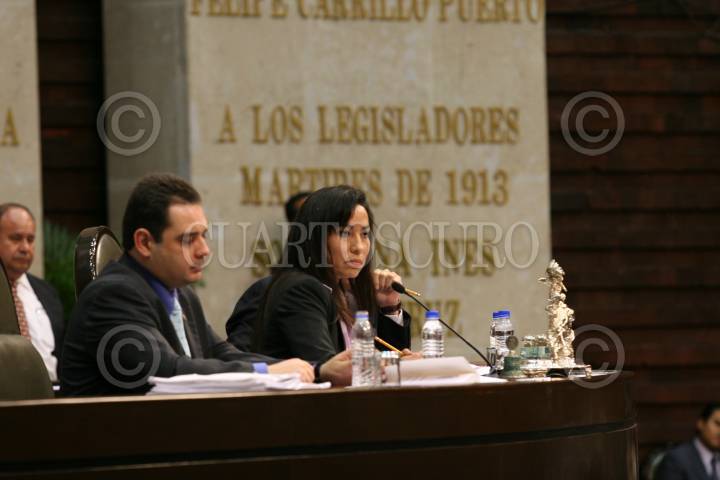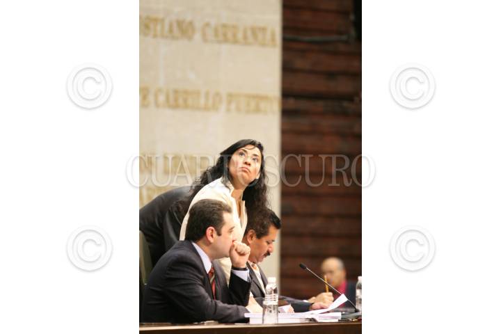 MÉXICO D.F. 03ABRIL2008.-Sesión ordinaria en la Cámara de diputados.En la imagen los diputados Ruth Zavaleta (PRD) y Cristian Castaño (PAN) durante la sesión.FOTO: GUILLERMO PEREA/CUARTOSCURO.COM