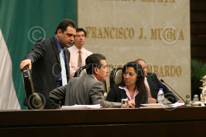 MÉXICO D.F. 08NOVIEMBRE2007.- Sesión en la Cámara de Diputados en donde se sionara el proximo Lunes el presupuesto para el ejercicio del 2008.En la Imagen los diputados del PAN, Hector Larios, Christian Castaño y la diputada del PRD, presidente de la mesa directiva, Ruth Zavaleta. FOTO: GUILLERMO PEREA/CUARTOSCURO.COM