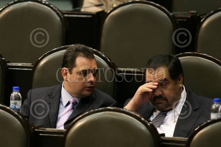 MÉXICO D.F. 27MARZOO2008.-Sesión ordinaria en la Cámara de Diputados.En la imagen los diputados Cristian Castaño dialoga con Diodoro Carrasco (PAN). FOTO: GUILLERMO PEREA/CUARTOCURO.COM