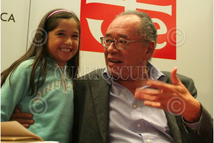 MÉXICO, D.F. 28AGOSTO2007.- El escritor Julian Meza presentó la nueva edición de su libro la Saga del conejo en la librería Rosario Castellanos. En la imagen con su nieta. FOTO: PAOLA HIDALGO/CUARTOSCURO.COM