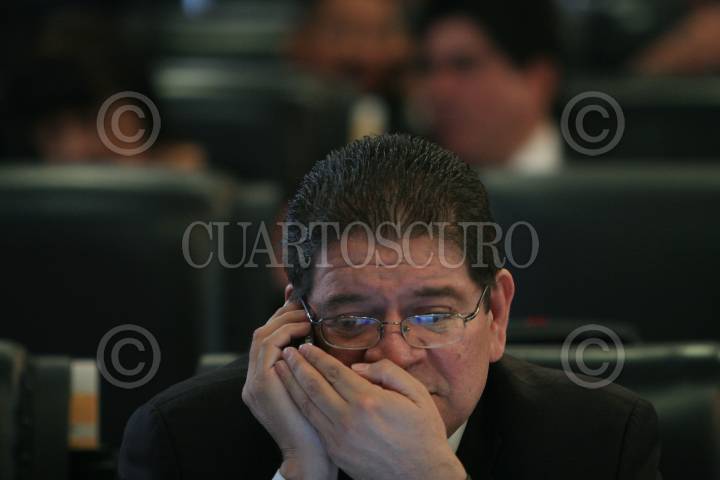 MÉXICO, D.F., 09FEBRERO2010.- Francisco Javier Castellón Fonseca, senador perredista intenta escuchar su conversación por su teléfono móvil ante el bullicio de la sesión en la Cámara Alta. FOTO: MOISÉS PABLO/CUARTOSCURO.COM