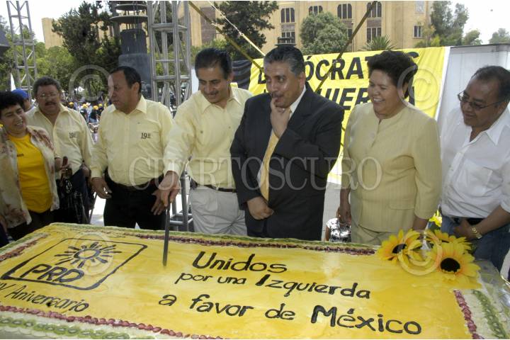 MÉXICO D.F. 05MAYO2008.-Integrantes de la Nueva Izquierda, celebraron el 19 Aniversario de la conformación del Partido de la Revolución Democratica (PRD) en el Monumento a la Revolución.En la imagen los perredistas Jesús Zambrano, Jesús Ortega, Guadalupea Acosta y Martha Dalia Castelum. FOTO: CUARTOSCURO.COM