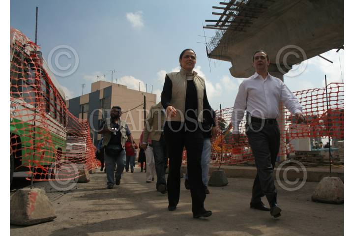 MÉXICO, D.F., 20OCTUBRE2008.- La presidenta del PAN en el DF, Mariana Gómez del Campo, junto con el diputado local, Agustín Castilla, durante el recorrido que realizó al distribuidor vial Muyuguarda, ubicado en la colonia Granjas Coapa; obra que lleva mas de 15 meses de retraso. FOTO: ENRIQUE ORDÓÑEZ/CUARTOSCURO.COM