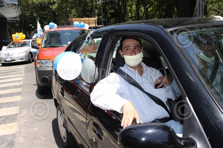 MÉXICO, D.F., 09MAYO2009.- El candidato panista a diputado federal por el distrito 08, Agustín Castilla, encabezó una caravana política y promover su campaña electoral en la contienda de las elecciones del 5 de Julio. Junto con sus seguidores partieron en coches adornados con globos y mantas alusivas, del Ángel de la Independencia en avenida Reforma. FOTO: MOISÉS PABLO/CUARTOSCURO.COM