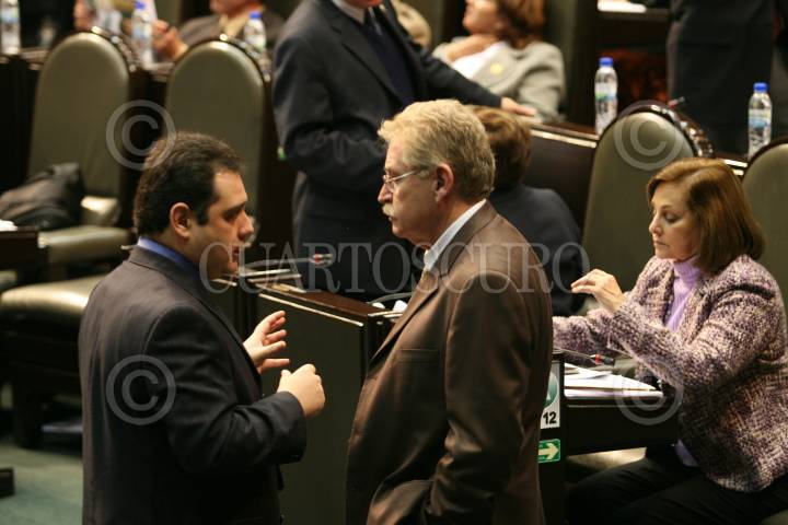 MÉXICO D.F. 30OCTUBRE2007.- Javier González Garza diputado del PRD, dialoga con Christian Cataño diputado del PAN, durante la sesión en la Cámara de Diputados. FOTO: GUILLLERMO PEREA/CUARTOSCURO.COM