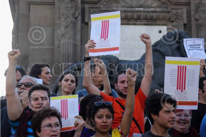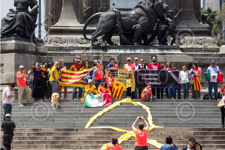 CIUDAD DE MÉXICO, 09SEPTIEMBRE2018.- Integrantes de la comunidad catalana en la capital realizaron una protesta, en las escalinatas del Ángel de la Independencia, para exigir la liberación de presos políticos. FOTO: GALO CAÑAS /CUARTOSCURO.COM